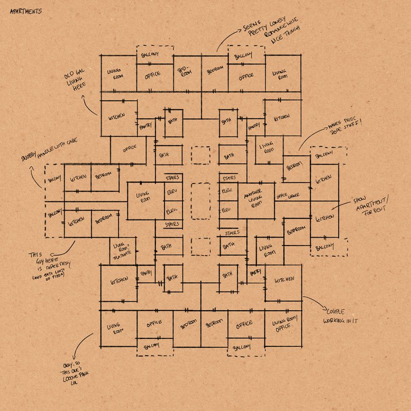 I’ve already sent someone over to scout the whole thing out a bit – they´ve made some sketches of some floors, maybe they are of use to you…