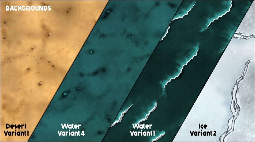 4 water, 2 ice and 2 desert backgrounds (8 in total)