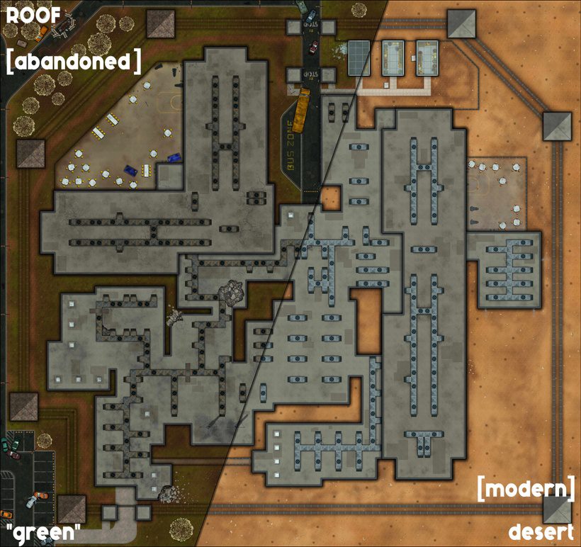 ROOF – ABANDONED / MODERN [85×80], “green” & desert variant