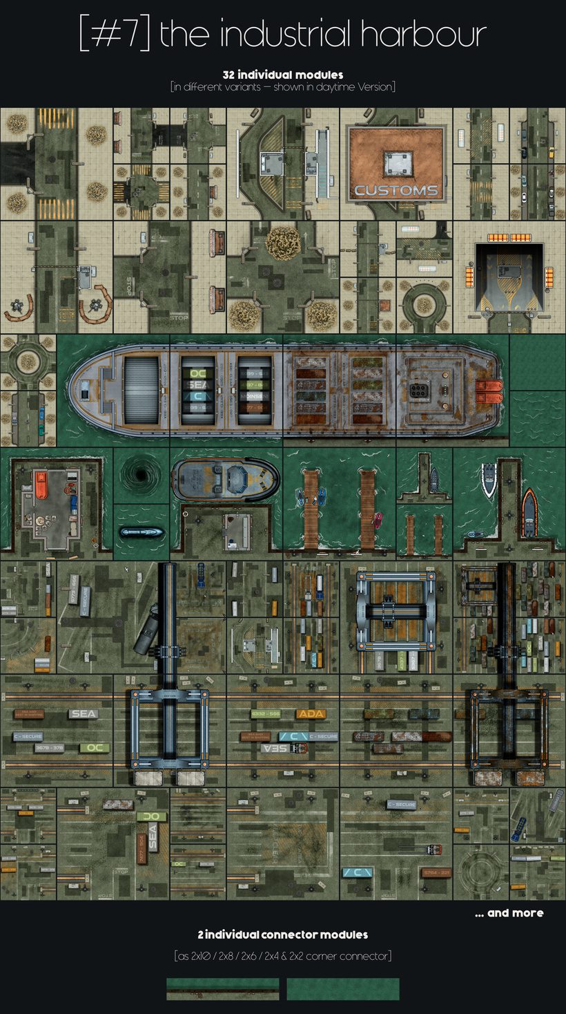 The modules are designed to fit perfectly with the tarmac textures from the #3 AVA Industries tiles and the #6 water purification plant modules in case you want to make bigger maps or get even more creative.