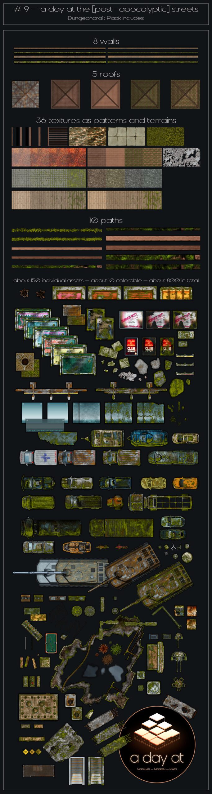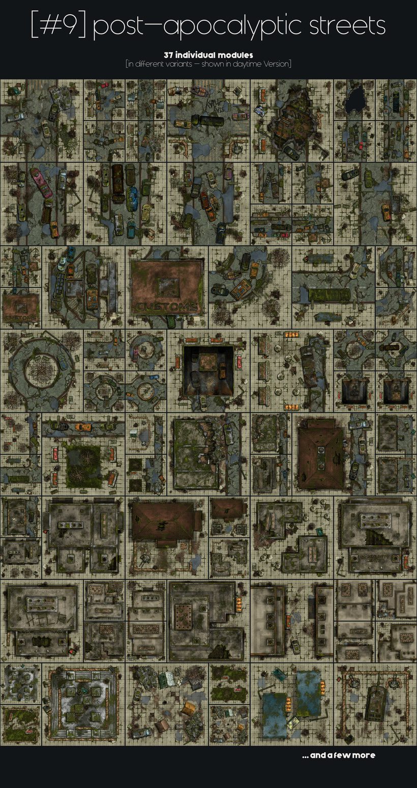 37 individual post-apocalyptic modules (with streets, buildings and squares).