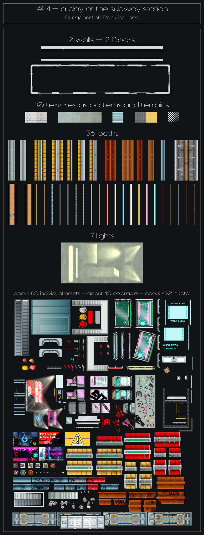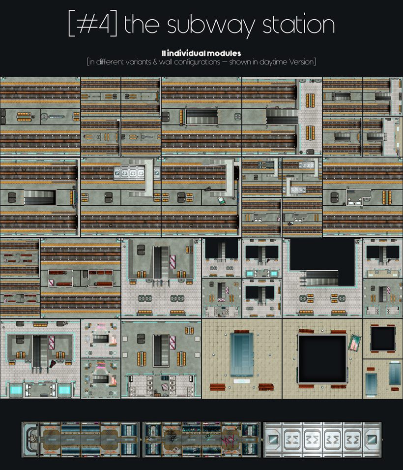 – including the following individual modules: 11 subway station modules in different wall configurations and variations.